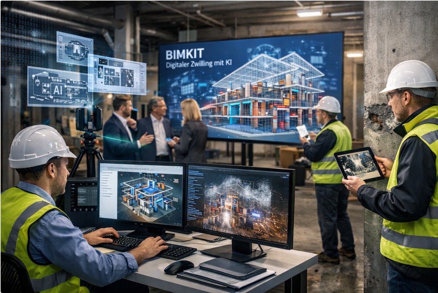 Der Aufbau digitaler Zwillinge im Bestand scheitert in der Praxis oft nicht an der Datenerfassung, sondern an der zeit- und fehleranfälligen Überführung von 2D-Plänen, Fotos und Punktwolken in bauteilbasierte BIM-Modelle. Genau an dieser Schnittstelle setzt das Forschungsprojekt BIMKIT an: KI-Verfahren sollen Bestandsdaten aus unterschiedlichen Quellen auswerten, Bauelemente ableiten und daraus möglichst automatisiert openBIM-fähige Bestandsmodelle generieren und fortschreiben.