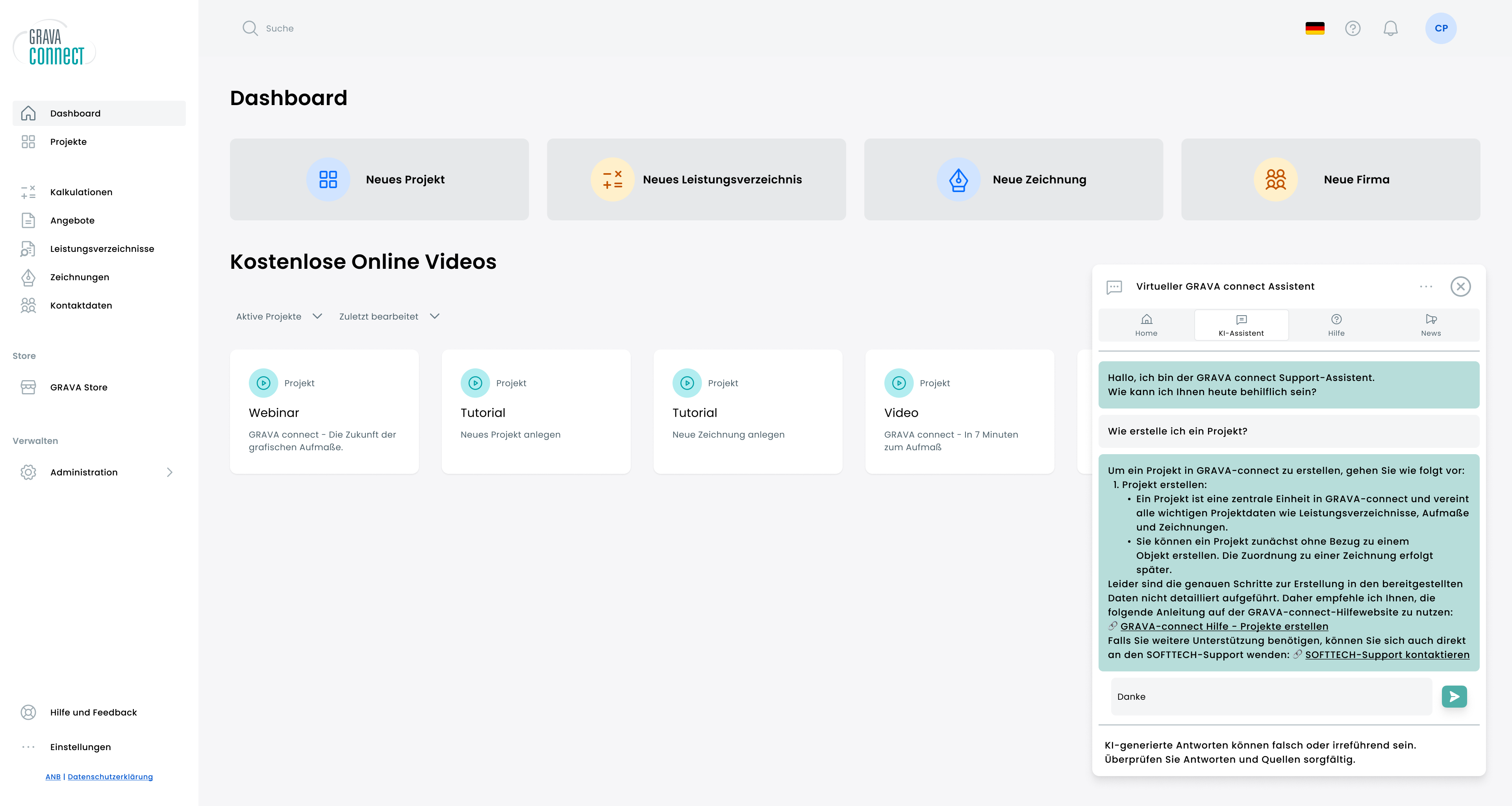 Die neueste Version von GRAVA connect für grafische Aufmaße erhält mit dem jüngsten Release Verstärkung durch einen interaktiven KI-Chatbot, der Nutzerinnen und Nutzern bei den unterschiedlichsten Fragen zur Anwendung Rede und Antwort steht. Die Software für Planende und bauausführende Unternehmen unterstützt Architektur- und Fachplanungsbüros bei der Mengenermittlung im Zuge der Ausschreibung und Fachhandwerksbetriebe und bauausführende Unternehmen sowie Bauleiterinnen und Bauleiter bei Mengenauflistungen während der Kalkulation. In der Version 2.0 können Leistungsverzeichnisse (LVs) laut SOFTTECH nicht nur über GAEB*-Dateien importiert, sondern auch direkt im System generiert und mit Mengen aus dem Zeichnungsmodul verknüpft werden. Das Programm verspricht ein vereinfachtes Handling und bietet beim PDF-Import ab sofort die Möglichkeit, Plandateien zusätzlich auf dem Cloud-Server von SOFTTECH zu rendern.